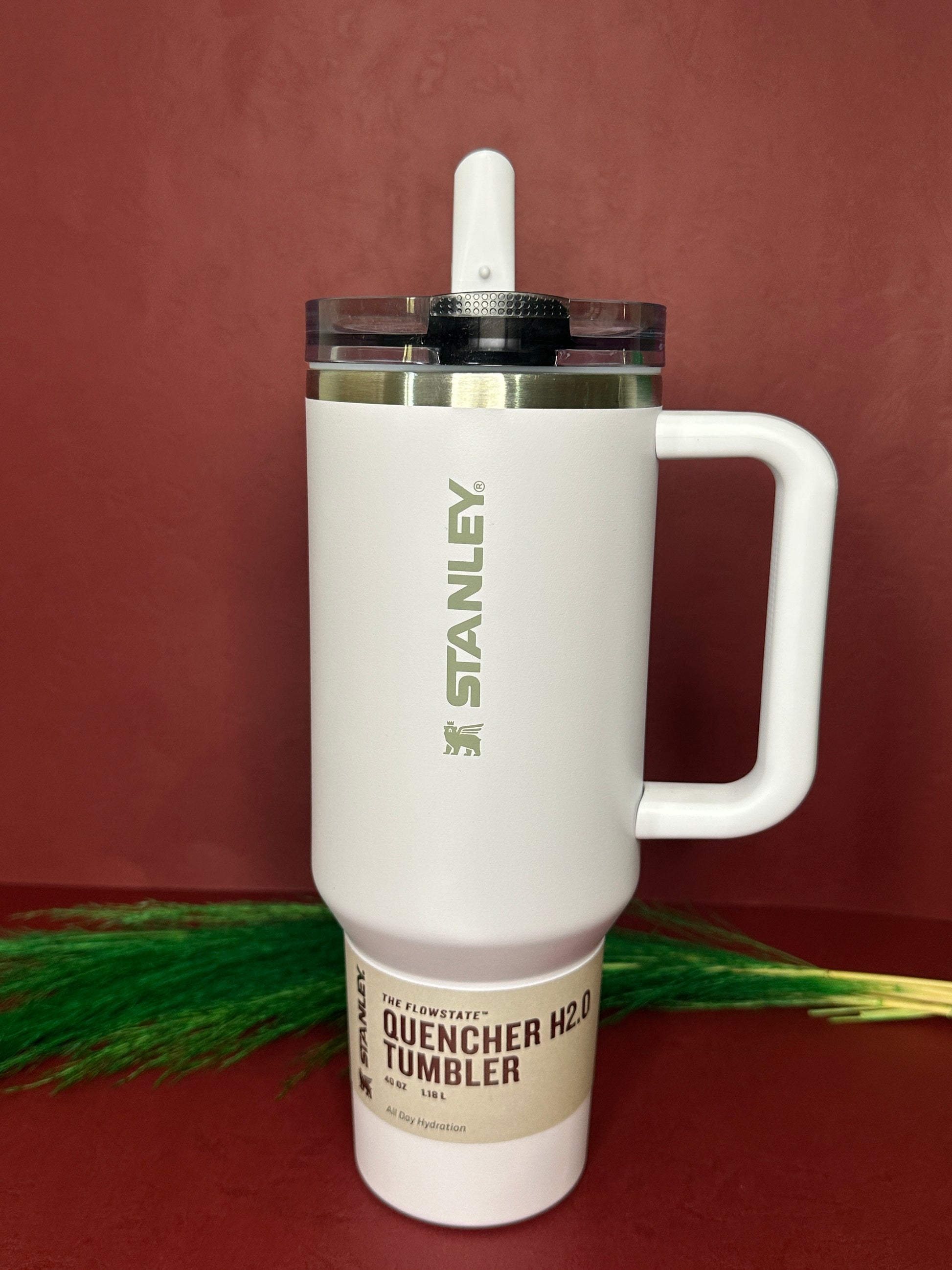 Stainless steel for both cold and hot drinks, has a handle and a straw.